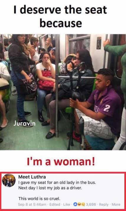 “I deserve the seat because I am a woman!”