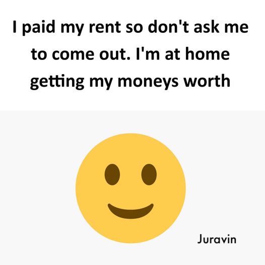 I paid my rent so don’t ask me to come out. I’m home getting my money’s worth